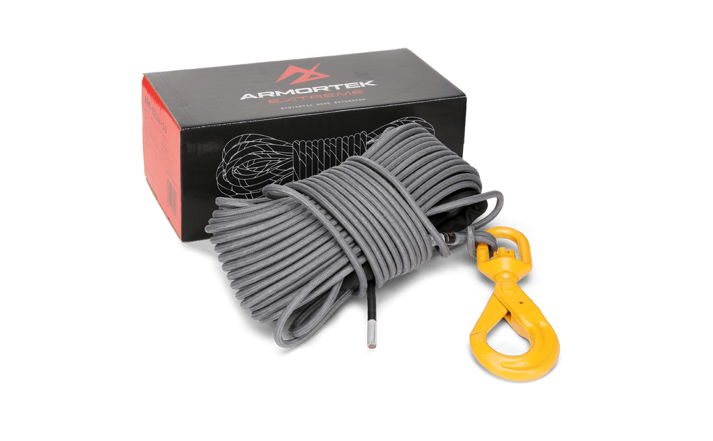 This complete winch rope kit includes a high-strength 3/8" x 150' (9.5mm x 45m) Armortek Extreme Synthetic Rope with an industrial-grade heavy-duty swivel hook, giving you everything you need for safe and reliable winching.